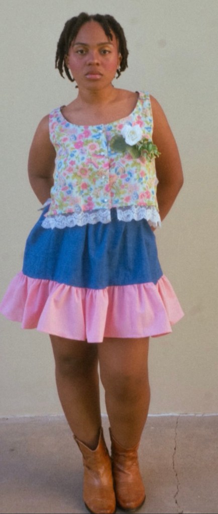 I built the jumpsuits from scratch — sourcing all elements of them and adjusting the same pattern for different body types and sexes.